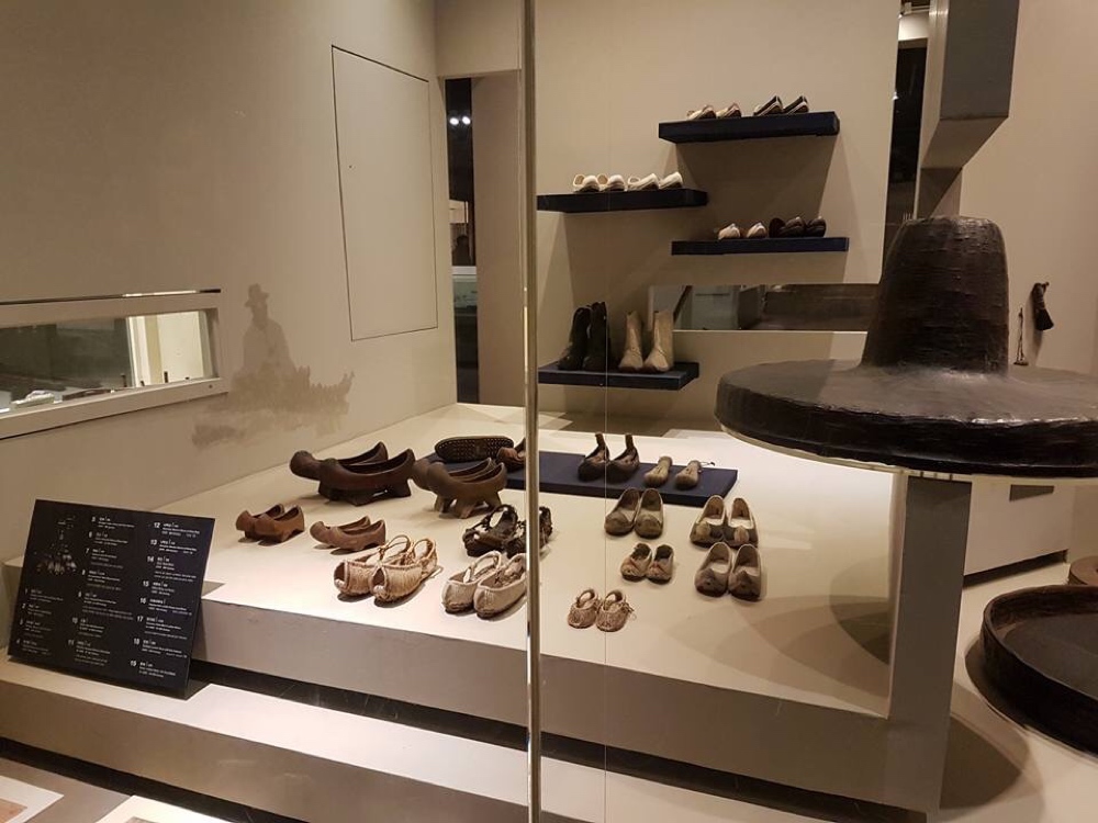 At the next display next to the gat, we can see a collection of Korean traditional footwear, Hwahyejang. The shoes are classified in Hwa (shoes that go over the ankle) and Hye (shoes that do not cover the ankle). Similar to the gat, at this time, shoes were an important indicator of a person's profession or social status. Each shoes' design, colour and style depend on social caste or occupation of the wearer. The shoes are typically made from leather obtained from cows, pigs and sheeps. One pair of shoes usually takes one week to make.